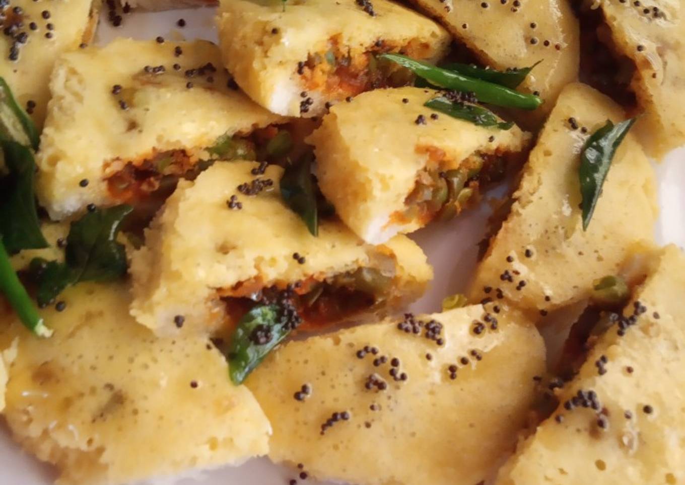 - Before you cover the bread stuffing, add eno to the batter. Mix well till fluffy. Now cover it with the batter and steam it for 10 mins or till done.