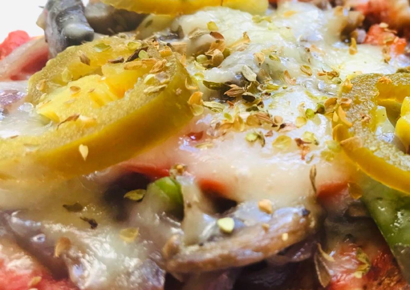 Veggie Bread Pizza with lots of Veggies of your choice, from spinach to chicken & homemade Marinara sauce.