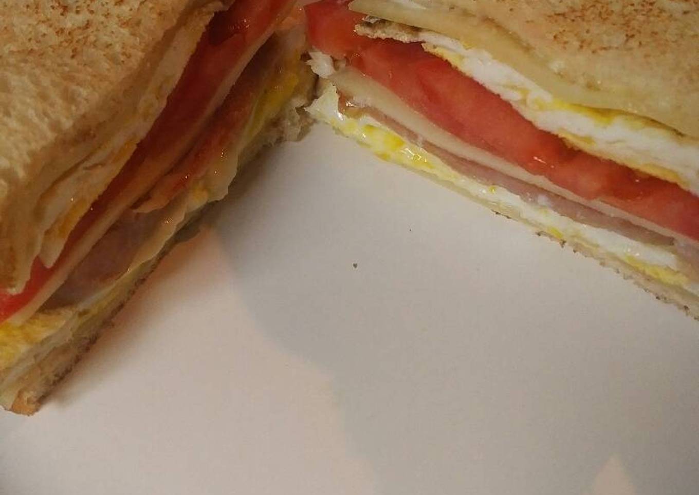 - Add mayonnaise to the bread then add eggs to both slices of bread. Top with cheese. Add spam and last piece of cheese.