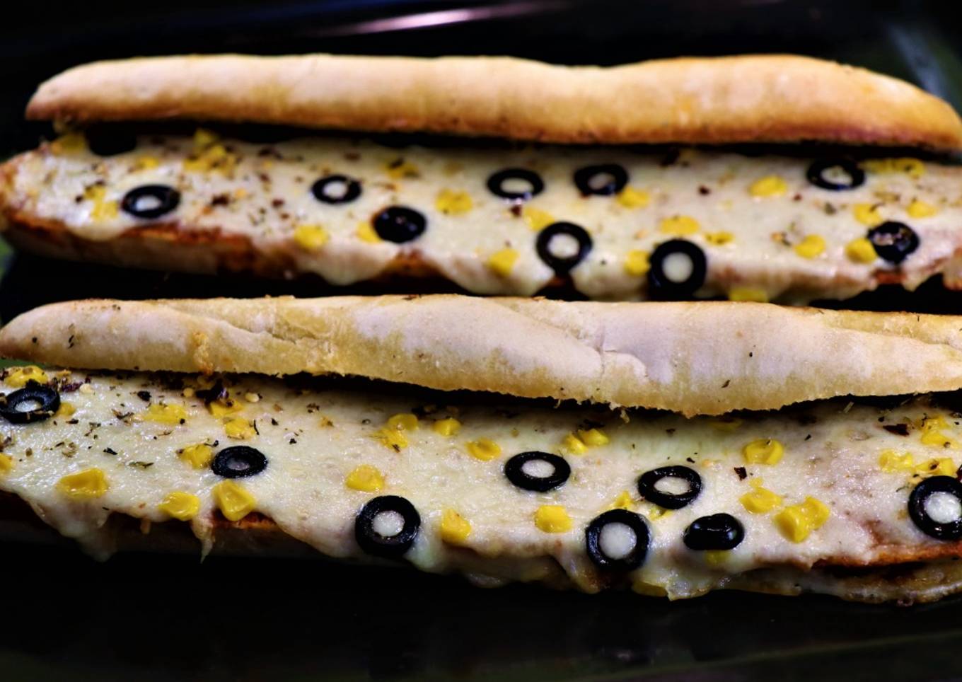 - In a preheated oven bake the bread at 200°C for 8-12 minutes or until cheese is completely melted.