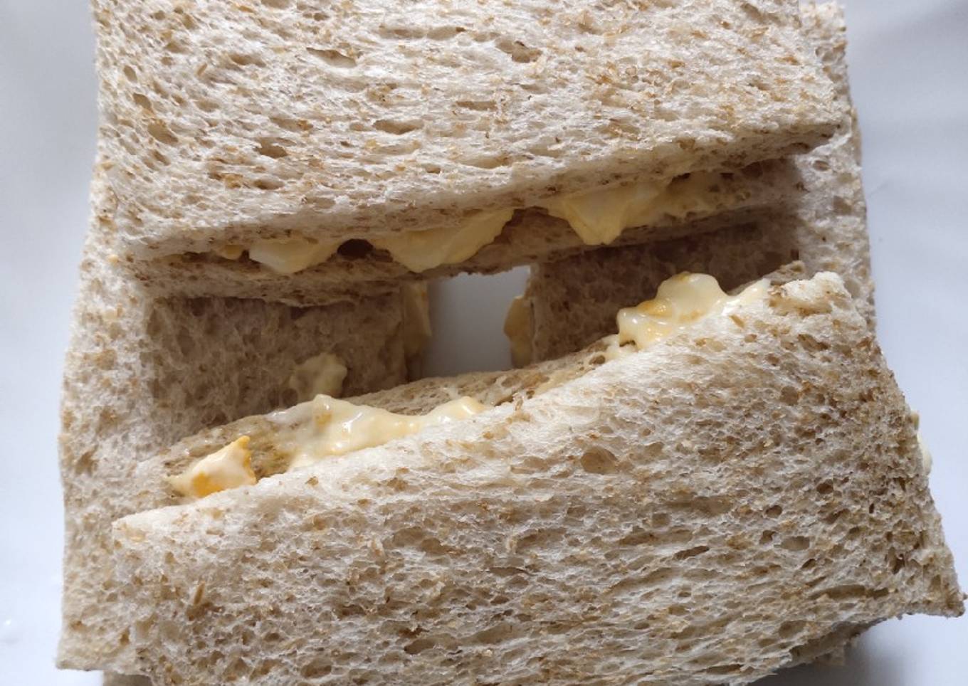 - Take bread and cut off the edges.Spread egg mayo then its ready.