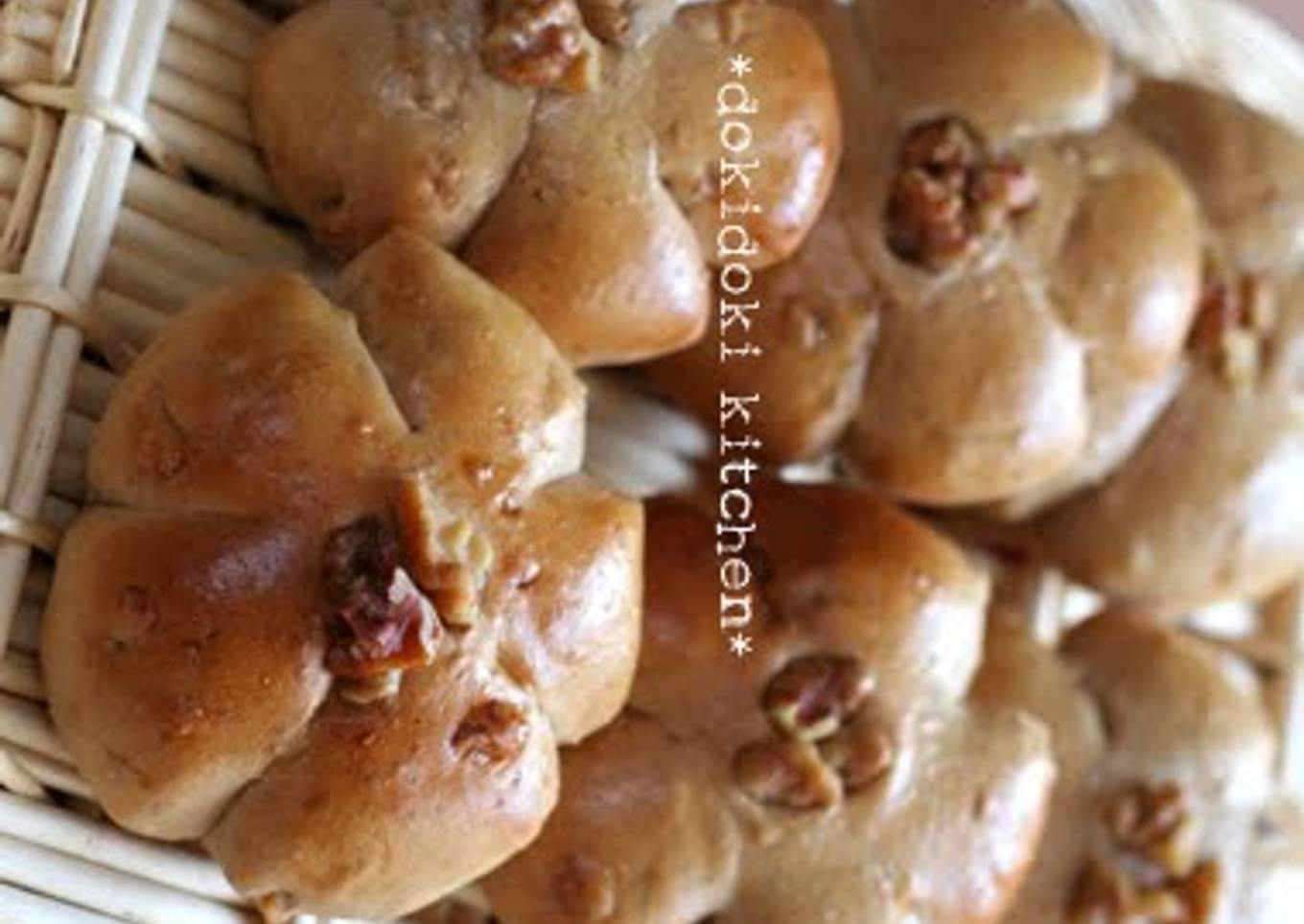 Brown sugar is rich and its sweetness goes the best with walnuts, so I recommend using it the most. I added in a bit of maple syrup to give it a moist texture. You can also use honey. Please sprinkle with a bit of powder when working with this if you need it. It might be tastier cooled than when freshly baked. For 6. Recipe by Dokintan