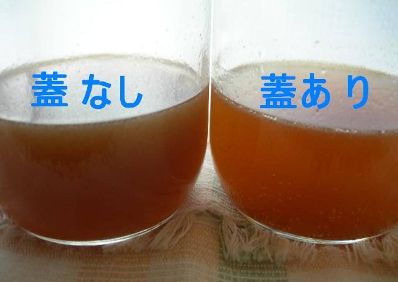 - The left one is the lidless version, and the right one is the lidded version. The lidded version has a lighter, prettier color, and foams up like beer. The lidless version is cloudier and darker!! And when you mix it up, it stays quiet. It also tastes stronger, and has way more yeast!! Both are done.